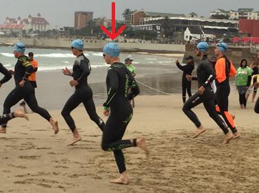 So stand ich überglücklich am Strand von Port Elizabeth bereit, um in wenigen Minuten bei meiner ersten Weltmeisterschaft zu starten. Mein Hauptziel war einfach nur ein schönes Rennen zu haben und, wenn an dem Tag möglich, noch unter 4:50 Stunden und damit im vorderen Drittel des Gesamtfeldes zu finishen. Große Unterstützung vom Streckenrand habe ich mir auch zugesichert: Neben meiner Familie war auch die Nachbars-Familie, mein Trainer und zwei Trainingskollegen als Starter bzw. Unterstützung dabei.