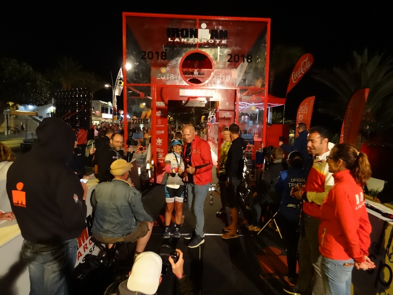 In Lanzarote hat jeder Finisher die Ehre, das Schlussband zu reißen und zu erheben. Nach der Meta war Kenneth Gasque da, Race Director, mehrmals Hawaii Finisher, die Seele des Ironmans Lanzarote - und ich durfte mich bei ihm bedanken, dass er auf mich gewartet hat, was Teil meines Traums war.