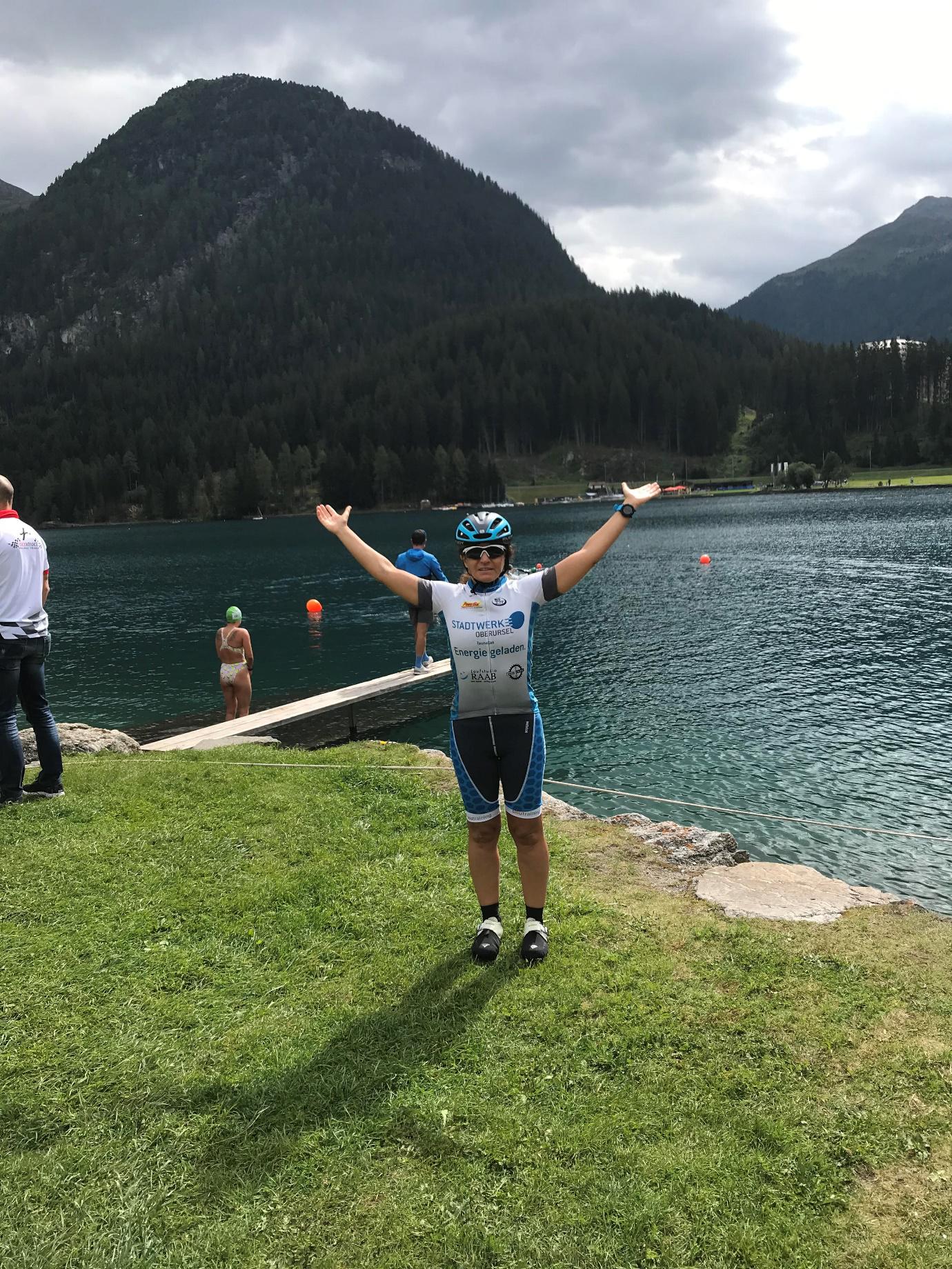 Dafür spricht die Bergkulisse, das Schwimmen im Bergsee, die Höhenmeter als Herausforderung: warum machts du das? Weil ich es NICHT kann… entsprechend hart hatte ich trainiert und stand am Wettkampftag fit und gesund am Start.