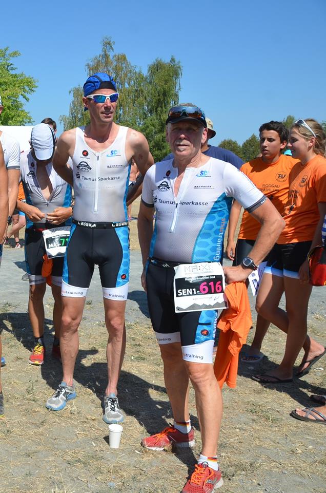 Zunächst blieb aber nach dem frühen Check-In noch genügend Zeit für ein Schwätzchen mit unseren VereinskumpelInnen Meli Döbele, sie versah als Kampfrichterin Dienst, und danach, um Detleff Witt als Einzelstarter beim Jedermann Triathlon anzufeuern. Nach 50:35Minuten kam Detleff als Gesamt -19., und mit einem hervorragenden 2. Platz in seiner Altersklasse ins Ziel.