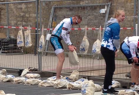 und ging als erster SCO-Athlet auf die – durch viele Kreisel und Wendepunkte, und nicht immer eindeutig markierte Ausfahrten, nicht ganz einfach zu fahrende Radstrecke. So wurde er dann auch, als erster SCOler die Wechselzone erreichend, von den mitgereisten Fans in der Wechselzone