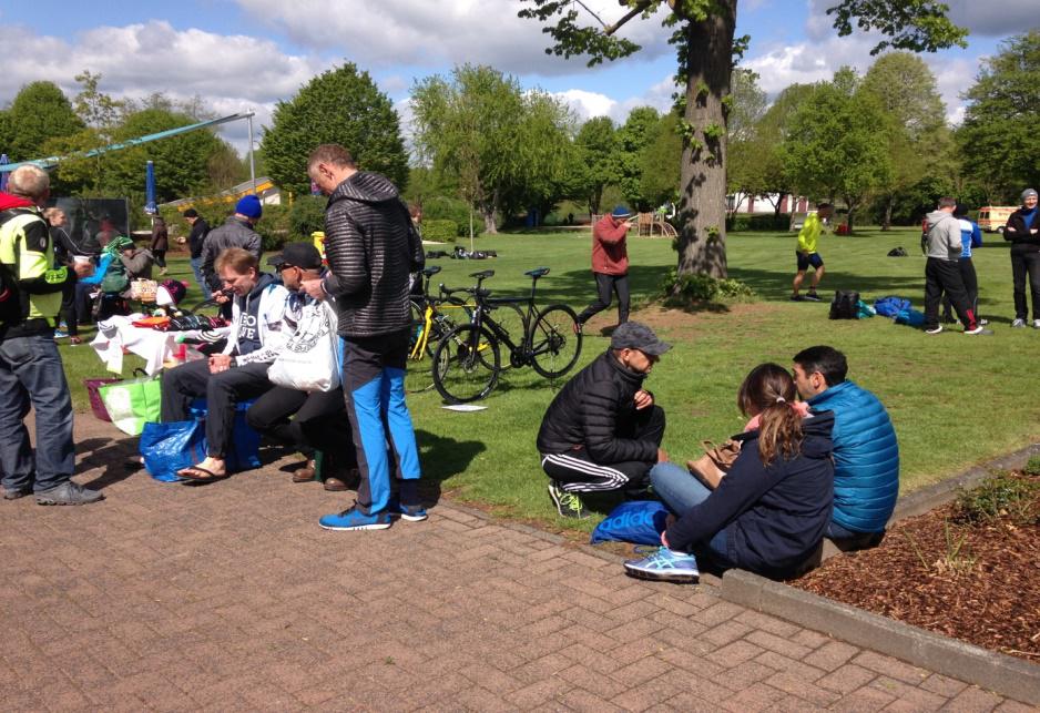 Bei gefühlt Minus 12°, aber herrlichem Sonnenschein, bereiteten sich die Athleten dann mit all der notwendigen Gelassenheit auf den Wettkampfstart vor: Inspizieren der Startunterlagen, feststellen, dass alle an das Startband, nicht aber an das Chipband gedacht hatten….., |