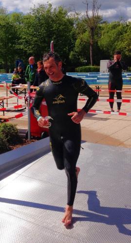 Bei dem, wetterbedingt zu erwartenden zeitintensiveren Umkleideprocedere, starte Josi eine ataque súbito und machte seine relativ schlechtere Schwimmzeit in einem „Husaren-raus-aus-dem-Neo -und-rein-in-die Klamotten-Streich“ mehr als Wett