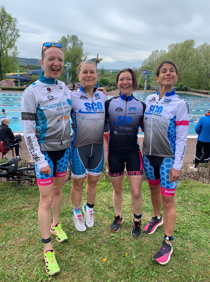 Den Hessenliga-Teams des SC Oberursel gelang Ende April ein nahezu perfekter Saisonauftakt beim Kinzigtal Triathlon in Gelnhausen auf der Sprint-Distanz 500 m Schwimmen, 18 km Radfahren und 5 km Laufen. Beide Teams, Damen und Herren, erkämpften sich in der 1. Hessenliga einen Platz auf dem Podest.