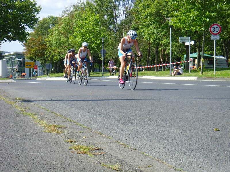 Bereits beim Schwimmen konnten die Zeit vom Vorjahr um ein paar Sekunden unterboten werden. Hannah Hartlieb übernahm die Führungsarbeit und schwamm sehr kontrolliert und mit Übersicht vorne weg. Steffi gab alles und schwamm eine für sie neue Bestzeit. Mit 12:32 Minuten wurden die Damen nach der Pause als 4. Team auf die Radstrecke geschickt. Hier zeigte sich, dass andere Teams mehr Routine beim Fahren im Teamverband hatten und wahrscheinlich auch mehr Druck auf dem Pedal. Die gute Platzierung konnte nicht ganz gehalten werden, ein Team kam vorbei. Es gelang jedoch bis zum Schluss der Radstrecke das Team zusammenzuhalten, wobei hier Claudi Z. mächtig die Zähne zusammenbeißen musste, Radzeit inkl. beider Wechsel 39:13 Minuten.